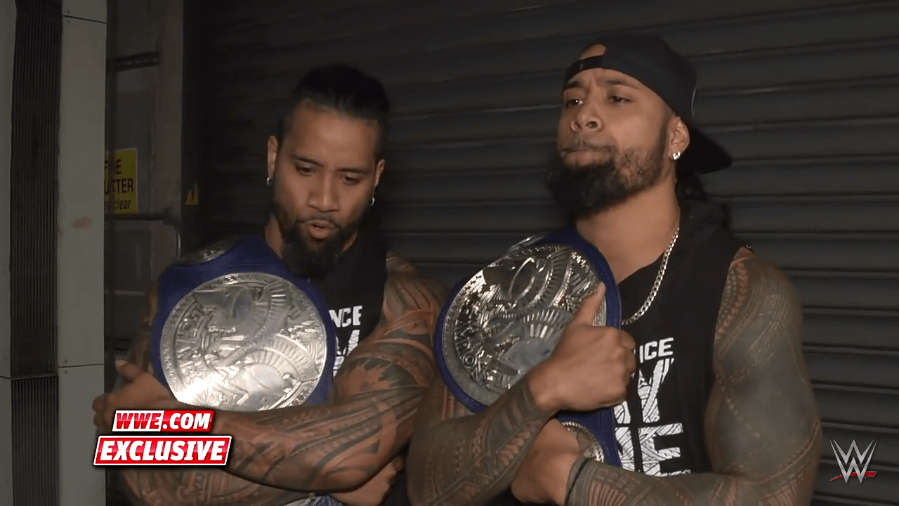 Later that Smackdown, the Uso’s should be in a match and Zayn and Owens should attack them and hit a helluva kick into a pop up powerbomb. They should hold the tag titles over the Uso’s body making a statement over what they want.
