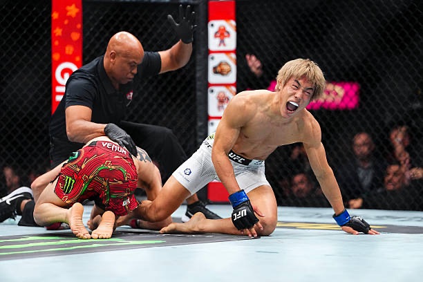 From there, Taira unleashed heavy, unanswered punches. Moreno flattened out under the pressure, unable to peel the hooks or turn to safety. The strikes kept coming, and the referee — perhaps a touch prematurely — waved it off as Taira continued landing.