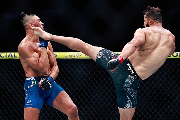 Costa landed a heavy head kick that visibly hurt Murzakanov. He followed up with more strikes, forcing Murzakanov backward. The head kicks continued to land, and Murzakanov failed to adjust to the timing and distance.